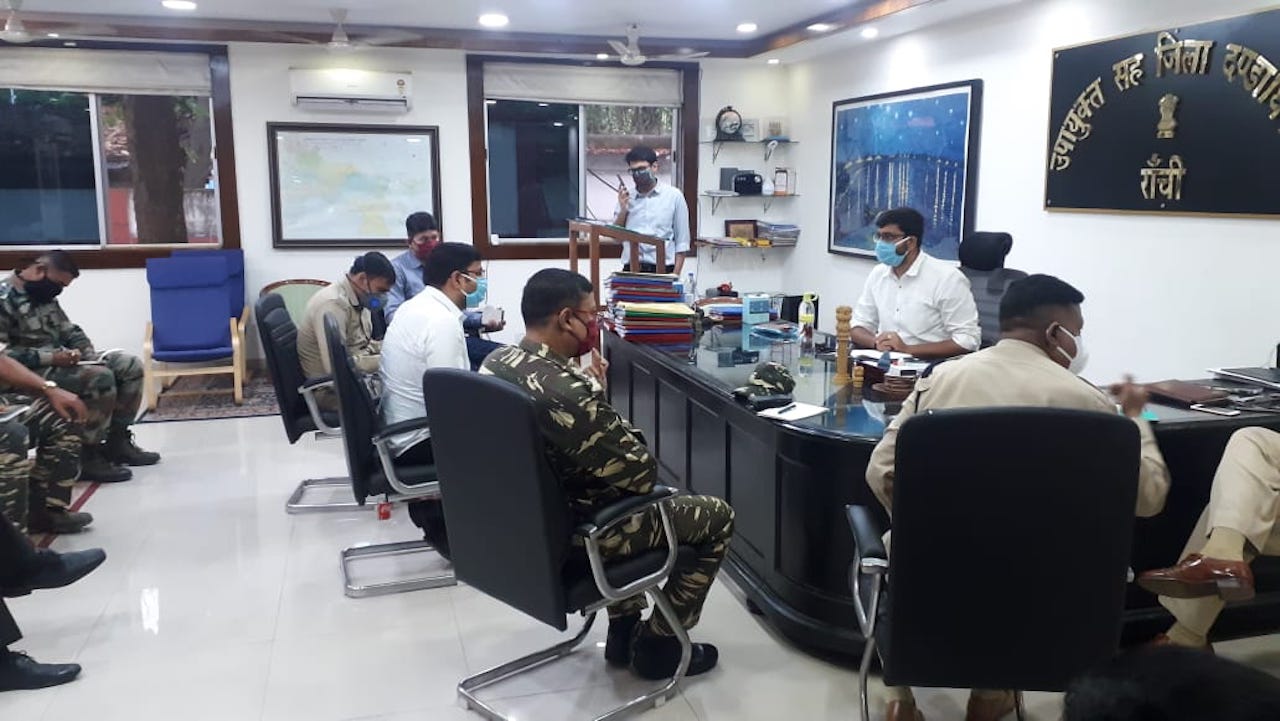 रांची उपायुक्त राय महिमापत रे की अध्यक्षता में केन्द्रीय रिज़र्व पुलिस बल के प्रतिनिधियों के साथ बैठक की गई। उपायुक्त के गोपनीय कार्यालय कक्ष में आयोजित इस बैठक के दौरान हिंदपीढ़ी के कमांड एंड कंट्रोल रूम के संचालन की पूरी प्रक्रिया की जानकारी दी गई। बैठक के दौरान सीआरपीएफ को जिला प्रशासन के प्रतिनियुक्त पदाधिकारियों और कर्मियों से बेहतर समन्वय स्थापित करने का निदेश दिया गया।